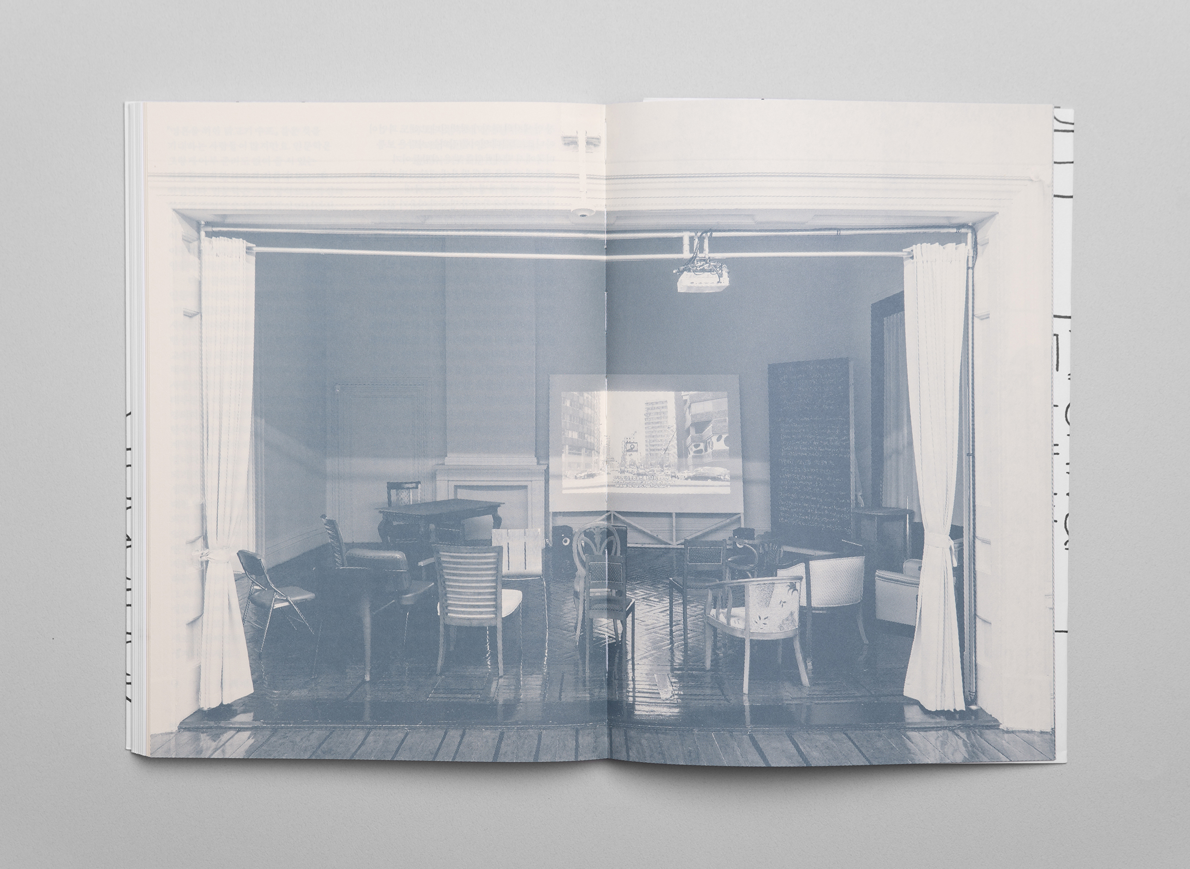 Book design for «The Village» project, a publication documenting the art project commissioned by SeMA Biennale Media City Seoul 2016, Curated by Ham Yang Ah, Published by Mediabus. 170×240mm, 168Pages, Thread Sewn binding, ISBN 978-89-94027-71-5, 2016.